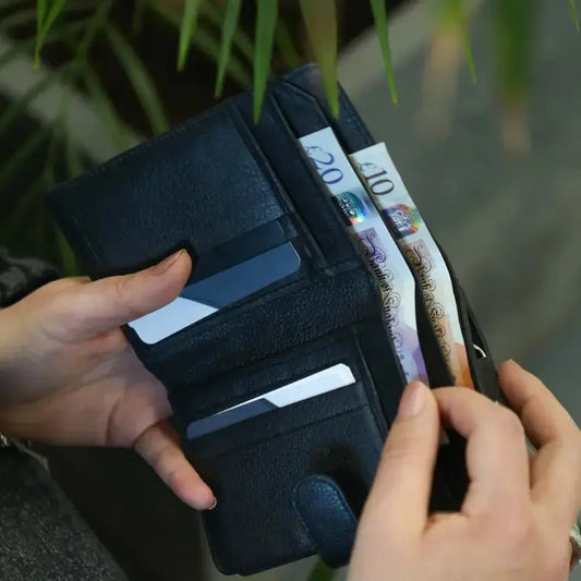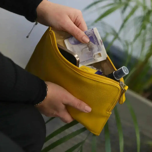 Love the colour & size. Holds cash & cards safely. So pleased with speedy delivery too.