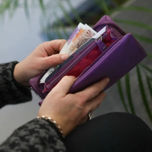Love the colour & size. Holds cash & cards safely. So pleased with speedy delivery too.