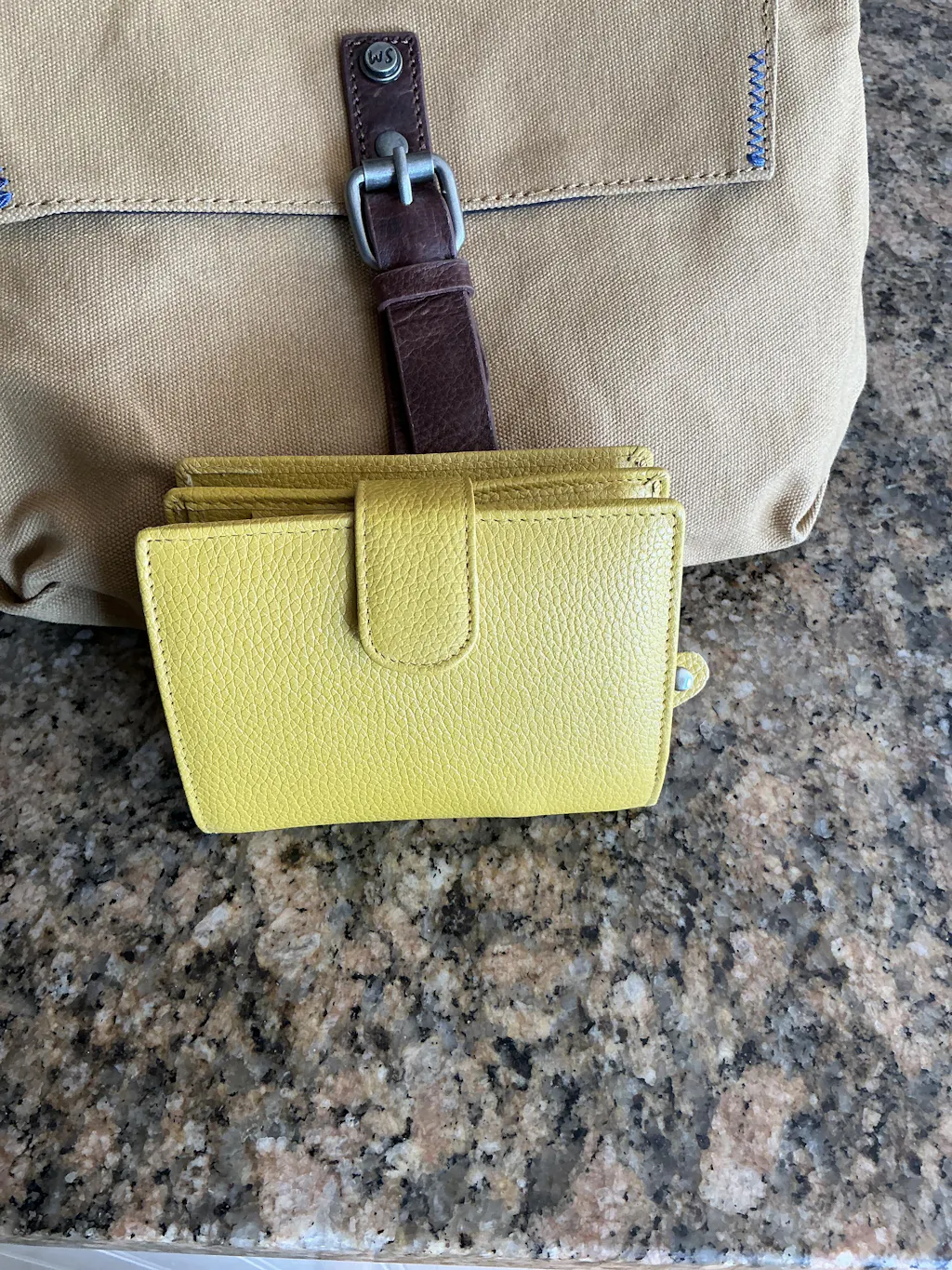 Large Tab Close Purse Wallet Tri-Fold Mustard Leather